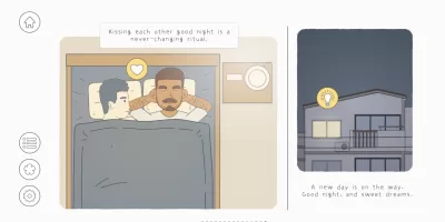 Finn and Gray have been together for five years now. Two men, simple living, and their biggest hobby is just eating for fun. Explore their husband & husband life, joy and love, hopes and dreams, and casual awkwardness and embarrassment in this slice of life interactive storybook.