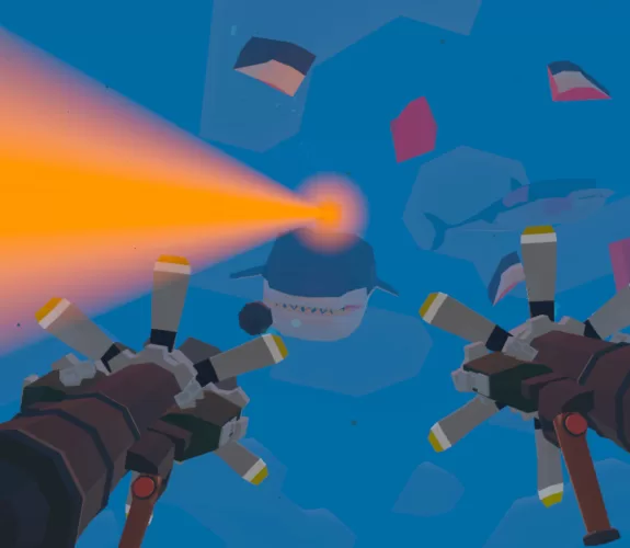 "A ridiculous VR game about fighting bloodthirsty and increasingly deadly sharks using makeshift weapons. Elevate the battle from the open ocean to the skies, and even into space! The sharks will stop at nothing to devour a tasty human."