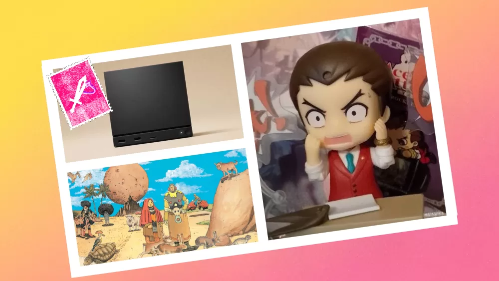 At some point over the weekend, my Ace Attorney merch display decided to rearrange itself. Specifically, my iconic and 100% canon Klapollo gay thoughts pin fell off the wall, hit Nendoroid! Apollo in the head and knocked his hair spikes clean off, before getting sort of wedged up behind him… chat does this mean anything? 👀